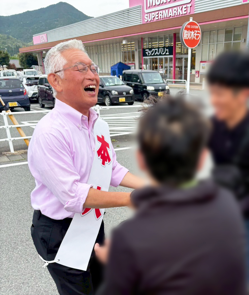 どこに行っても、あったかい。多可町から、神河町、そして市川町と、順々にまわっているが、沿道から、車の中から、多くの方に手を振っていただける。握手に、写真撮影に、サイン。雨の中、傘を刺して聴いていただける方もいて、感謝の思い。皆さん、本当にありがとうございます。
