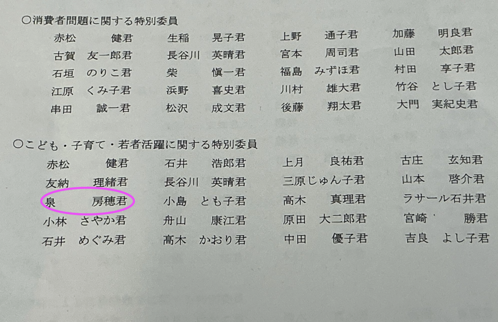 希望が叶い、私の所属は、①『こども特別委員会』に、②『法務委員会』に、③『行政監視委員会』に、④『国民生活調査会』の4つ。