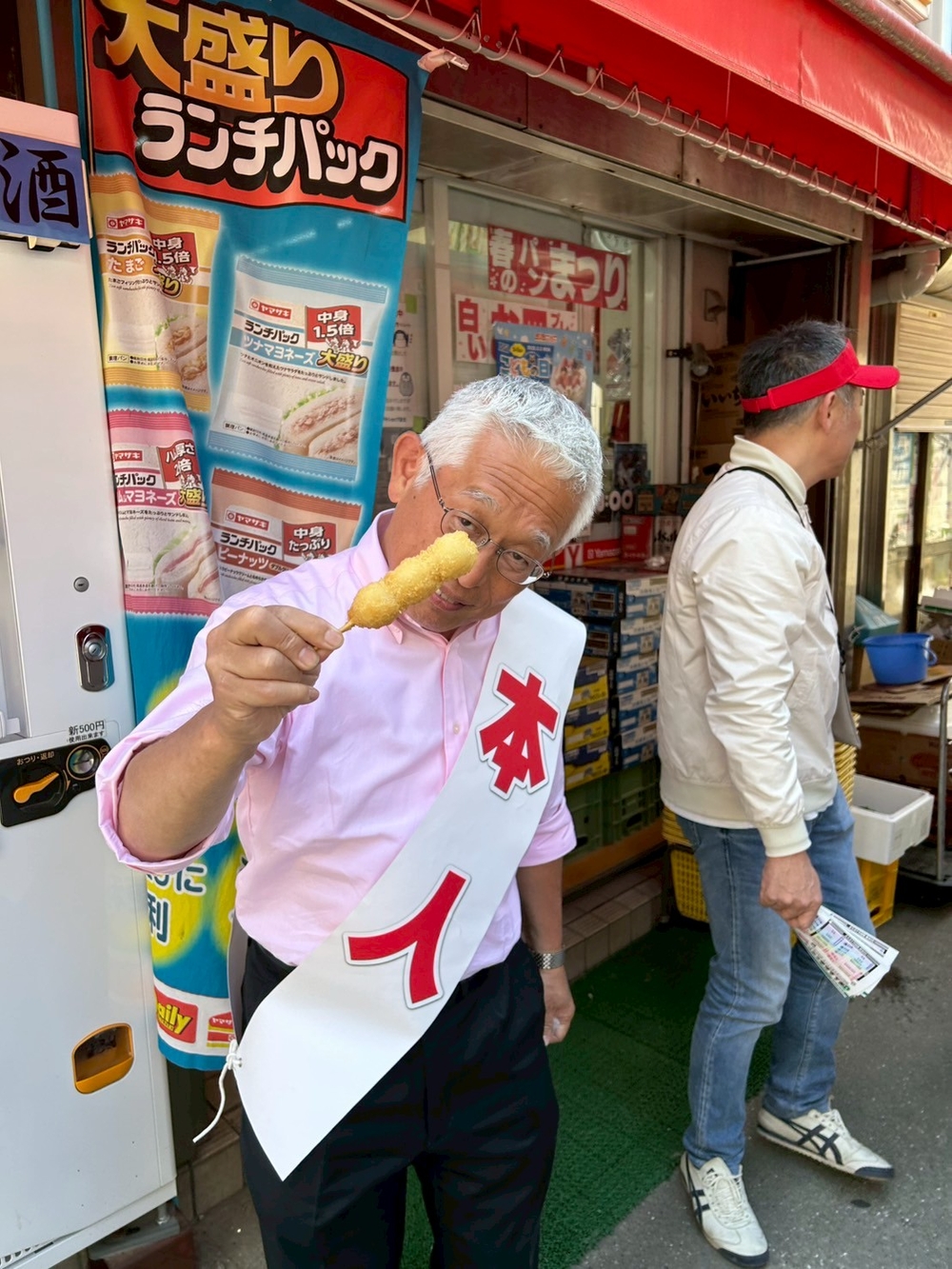 行く先々で、チョットひと口。『エビコロッケ』に、『うずら卵の天ぷら串』に、