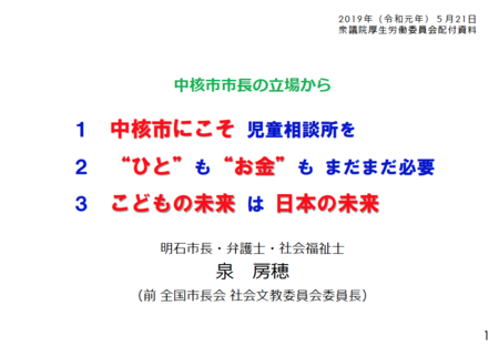 衆議院厚生労働委員会にて児童虐待防止対策について明石市の事例を話してきました(発言時の資料データを追加しました)